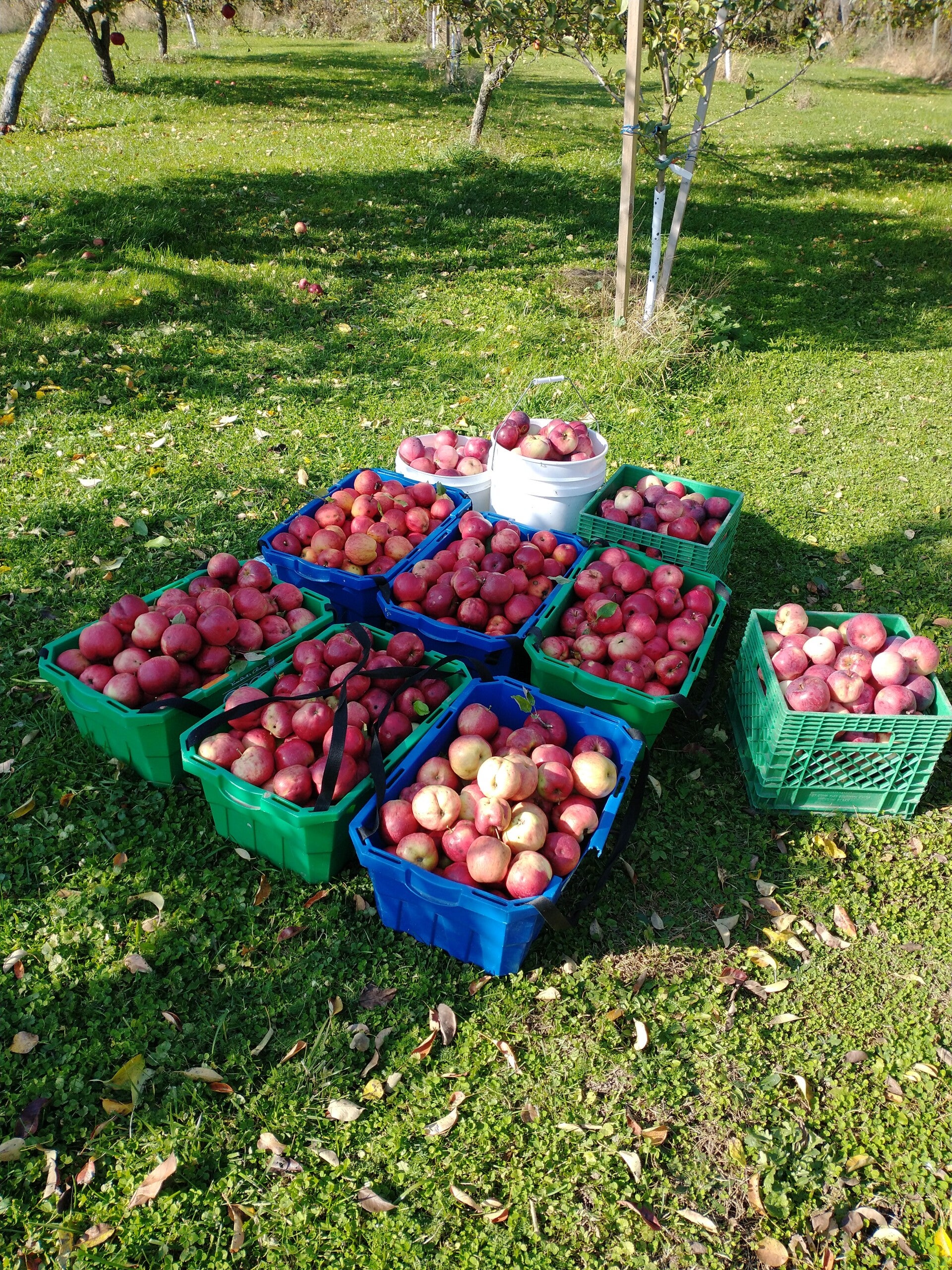 The apples are taken to a local press where they are washed, pressed, pasteurized, and packaged into convenient milk-style bags. We freeze them to enjoy throughout the year, savouring a little taste of the orchard until the next harvest rolls around. It’s a tradition filled with hard work, togetherness, and the simple joy of sharing something homemade and special.