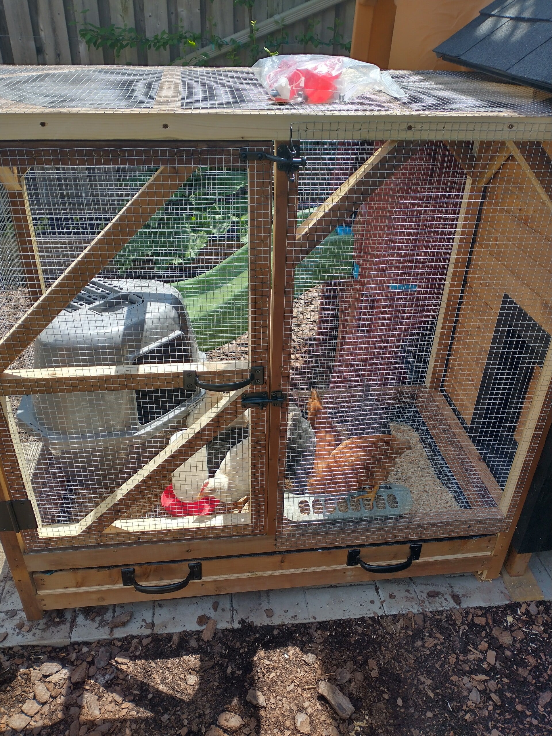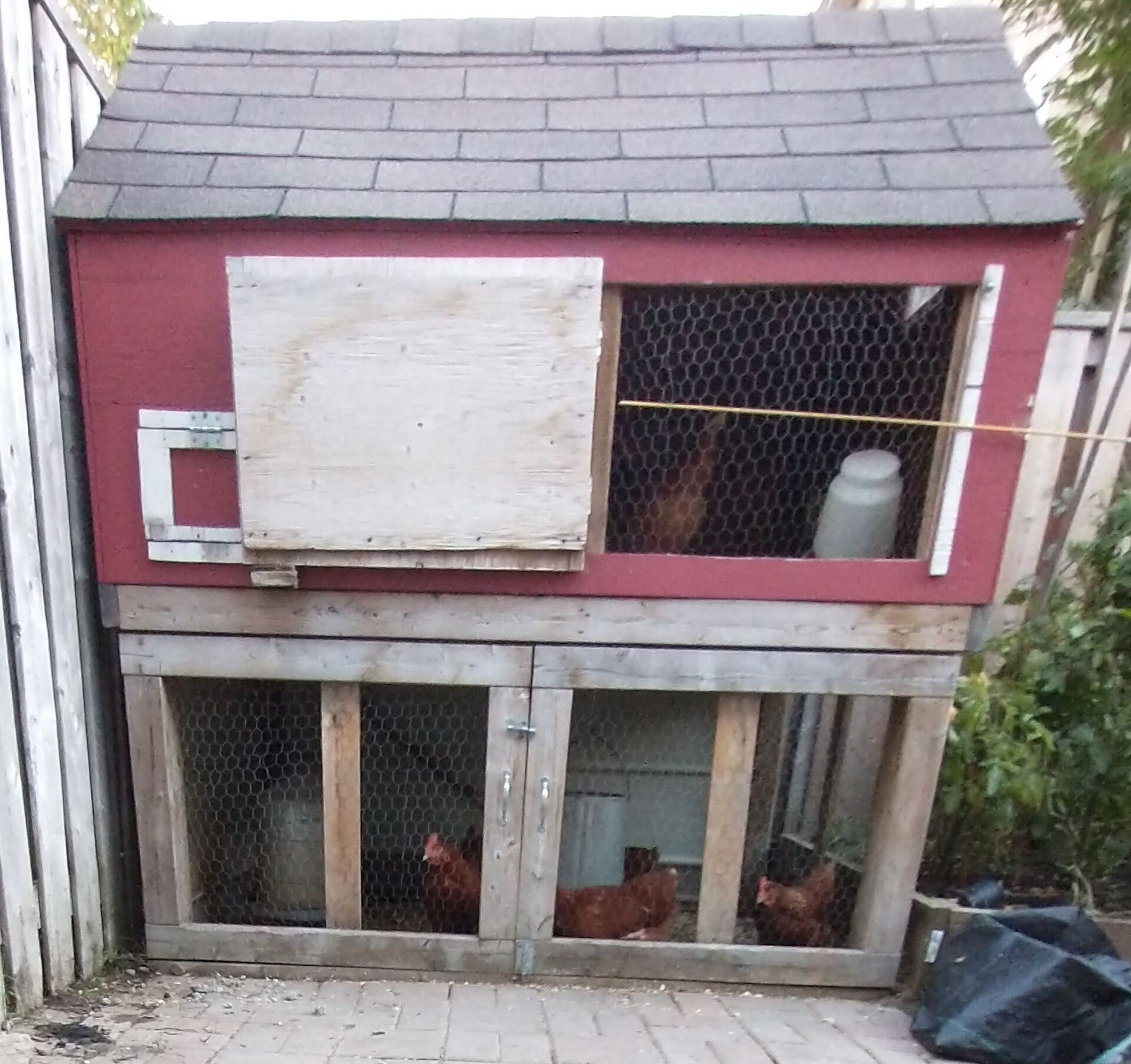 This coop ended up being relocated to my parents farm along with the chickens where my father has further altered and perfected the design. It works very well in his space and the chickens are very happy.