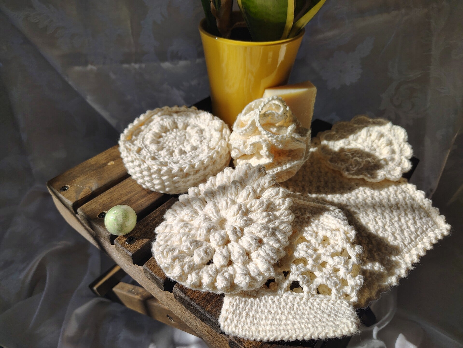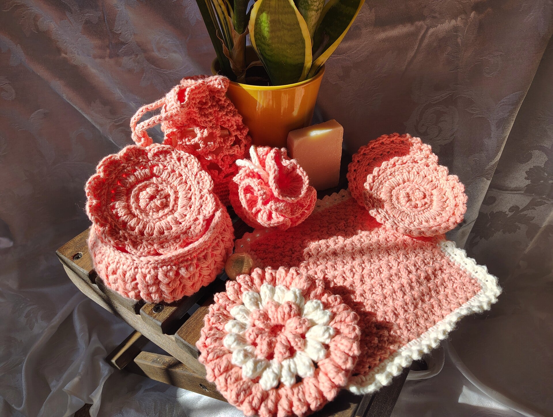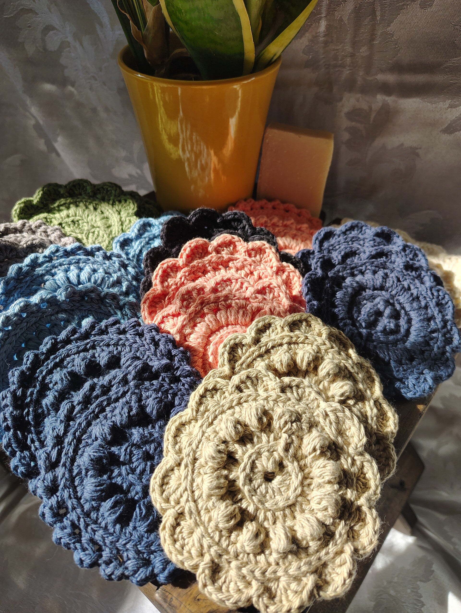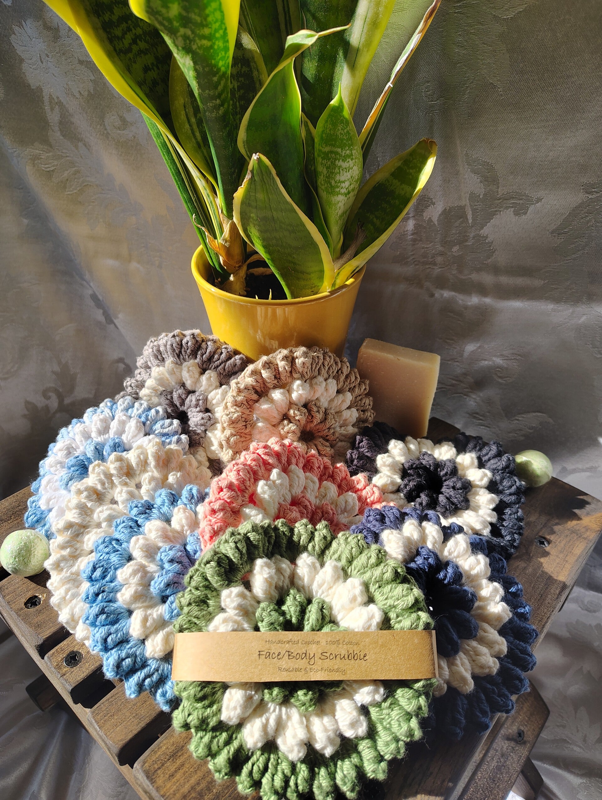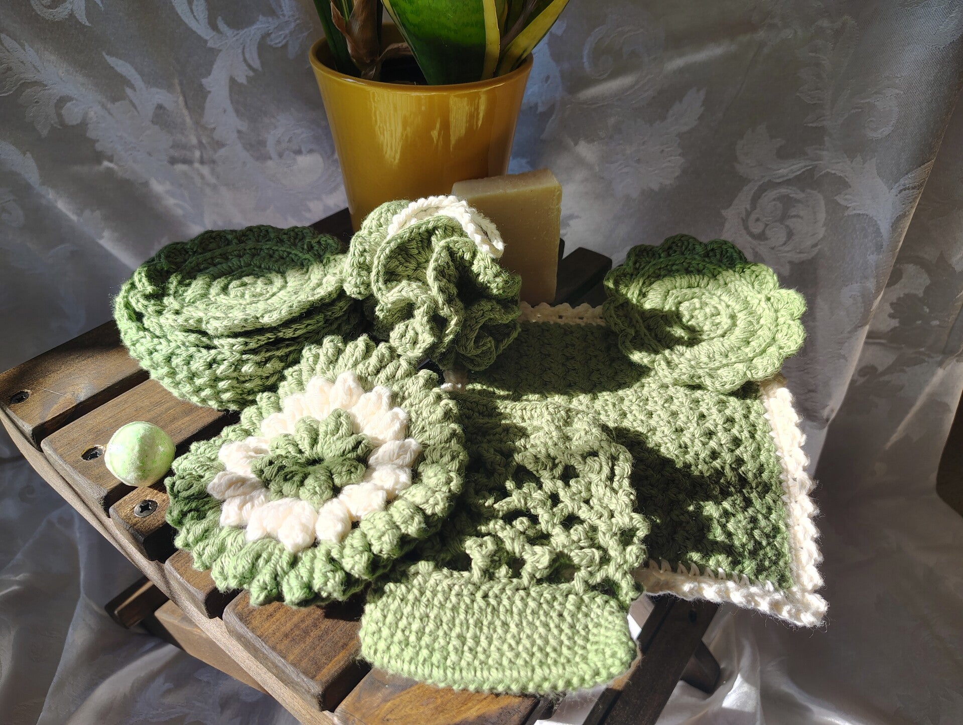 Slow down and treat yourself to a little handmade luxury. My Postage Stamp Spa Collections are thoughtfully crocheted with 100% cotton yarn, making them soft on your skin, durable for daily use, and kind to the planet.